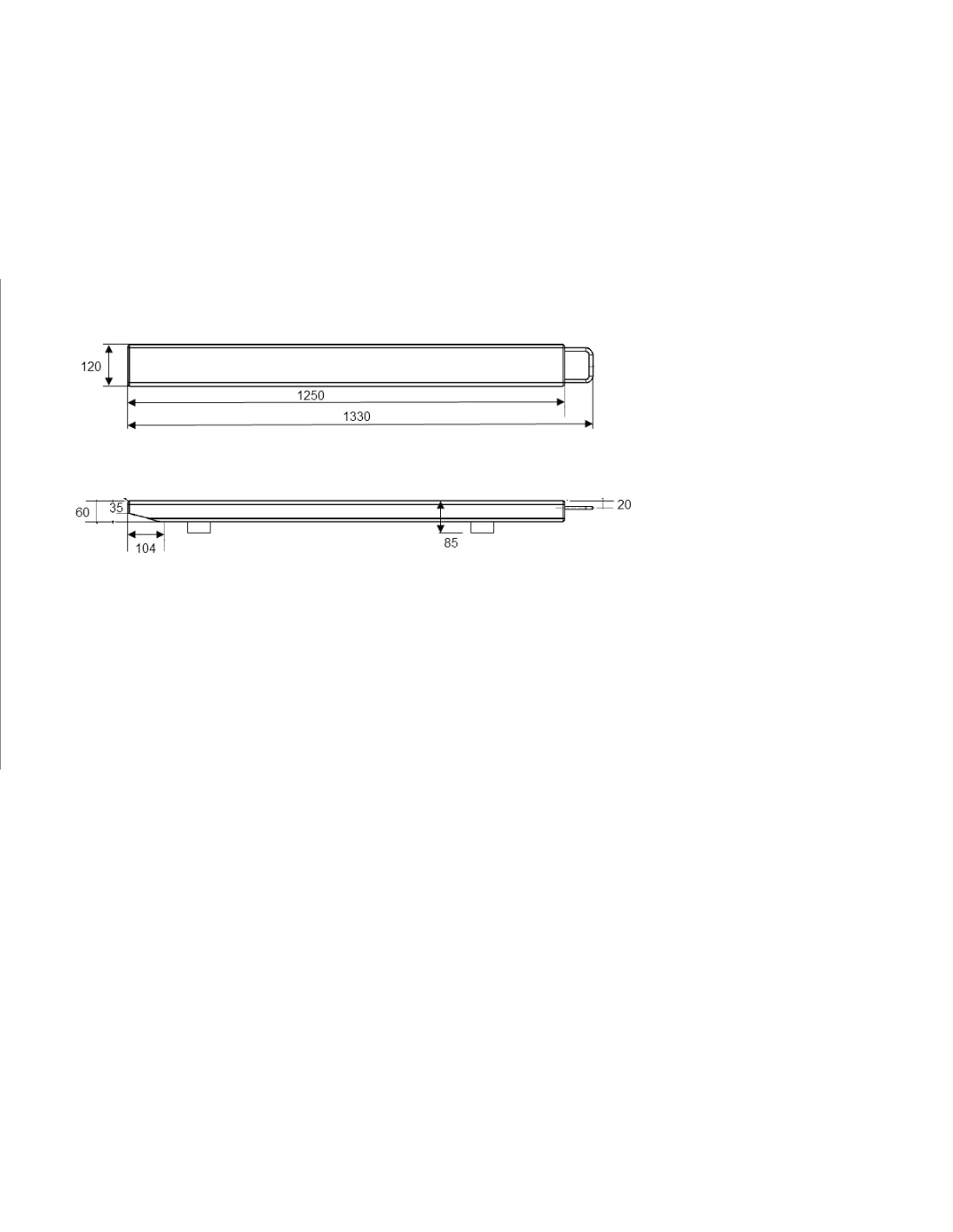 - 1250x120x85 mm