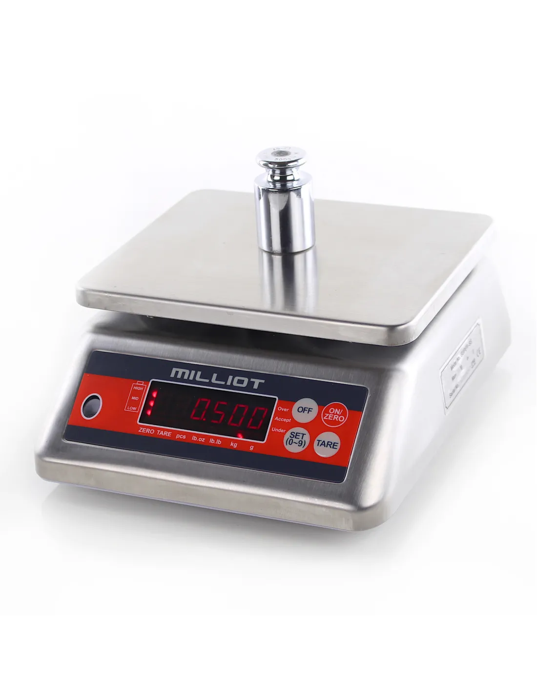 Cette balance inox dispose de 4 pieds réglables et d'un niveau à bulle pour assurer l'horizontalité parfaite, gage d'une bonne pesée.