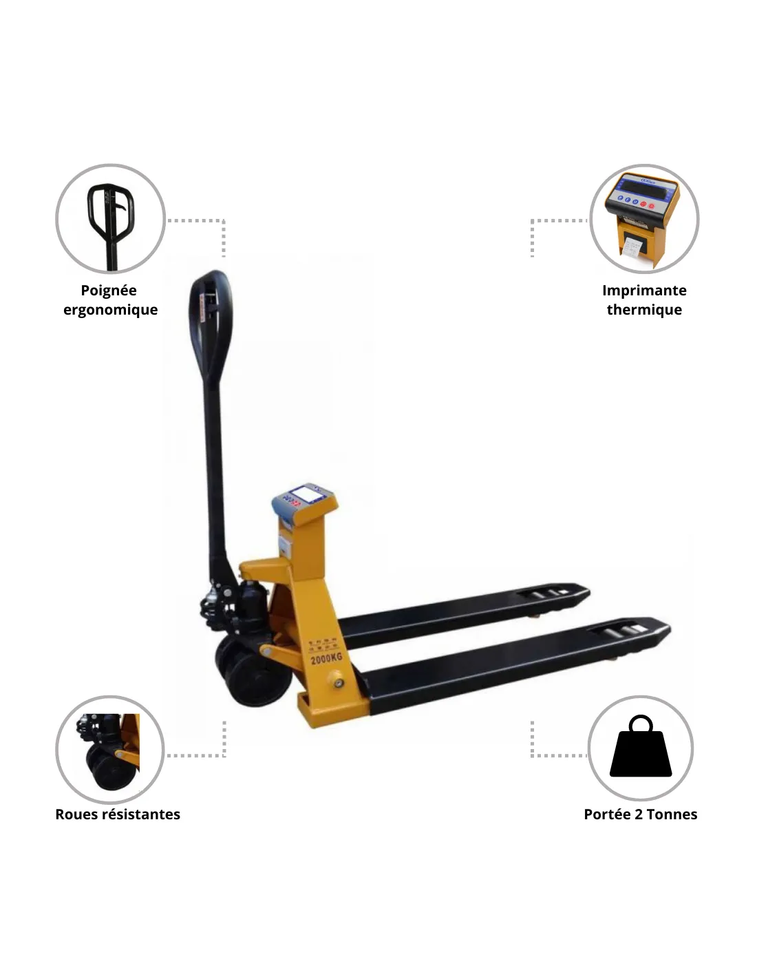 Ce transpalette robuste à un prix accessible vous permettra de peser vos produits avec précision et rapidité.
