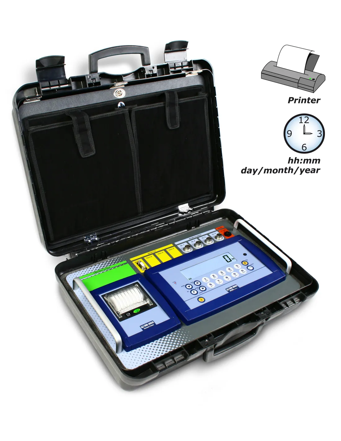 Equipé d'une imprimante thermique avec horloge et calendrier et mallette conçue pour accueillir l’indicateur