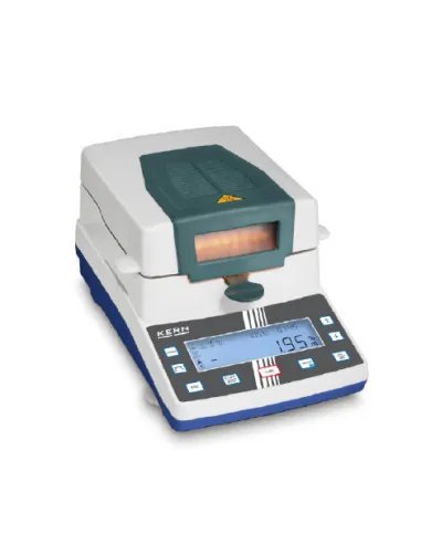 Portée de 110 g, précision de 0,001 g. Analyseur d’humidité avec écran graphique intuitif et 15 emplacements de mémoire pour les processus de dessiccation et 5 precessus de dessication effectués.
