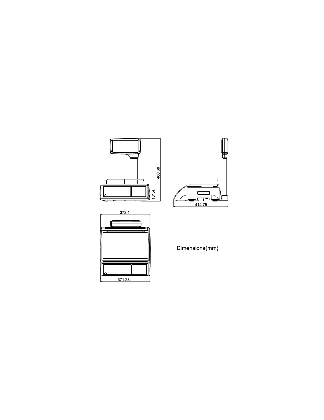 Double affichage très lisible client et vendeur sur colonne