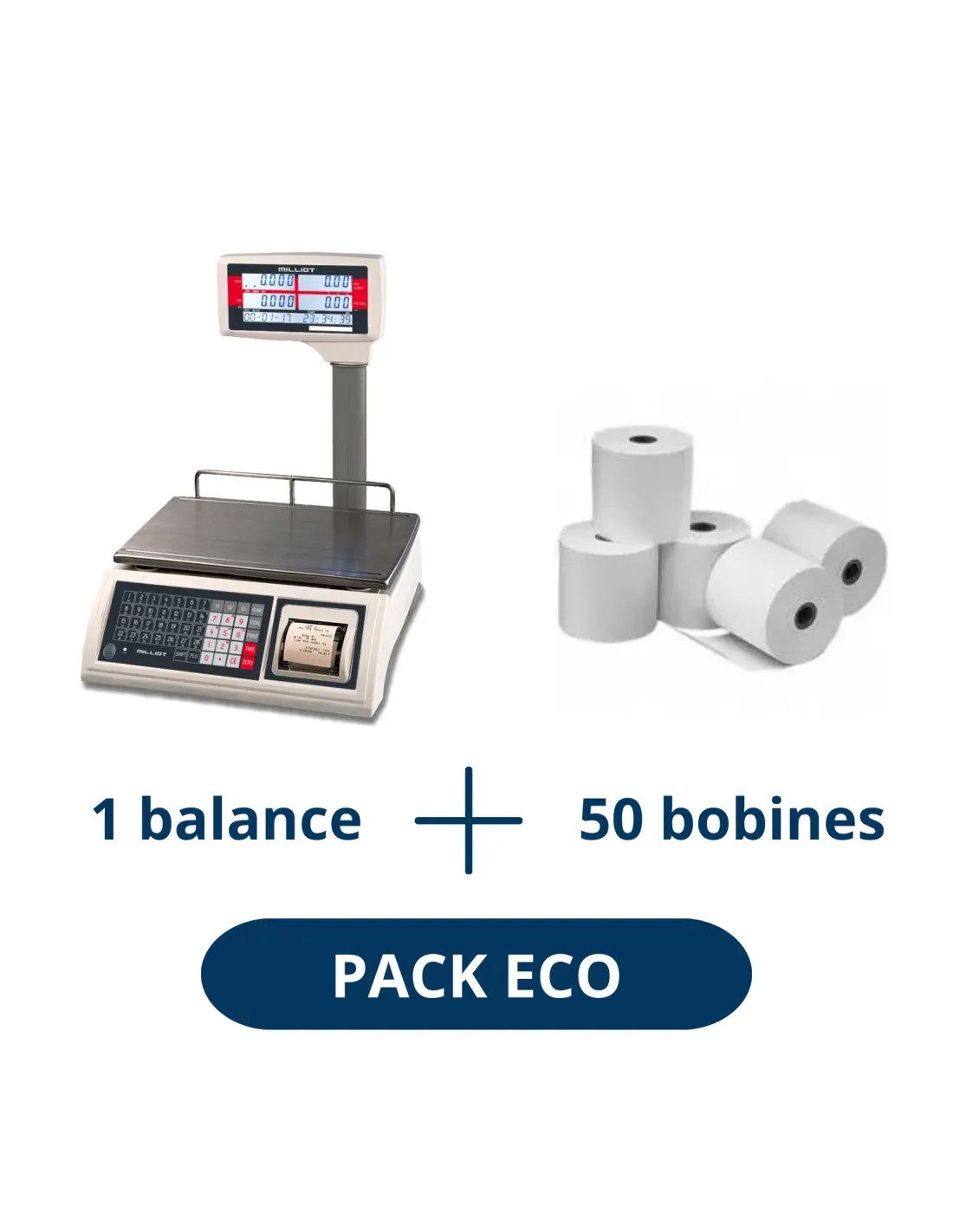 PACK ECO STARTER : Balance Poids Prix Milliot BMJPP + 50 bobines de papier thermique