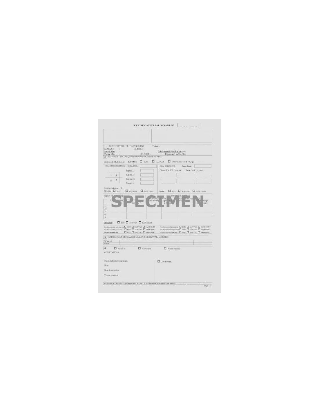 • 1 certificat d'étalonnage