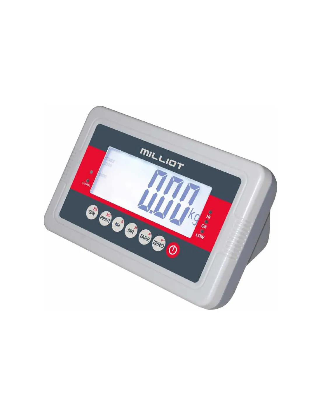 • Un afficheur très lumineux rétro-éclairé, hauteur des chiffres 52 mm, avec fonctions de comptage, de cumul des pesées et de contrôle visuel et sonore + et -